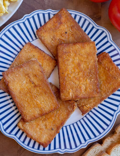 My easy Vegan Bacon Recipe is made using tofu and a homemade sweet and smoky marinade. Let sit overnight, or for just