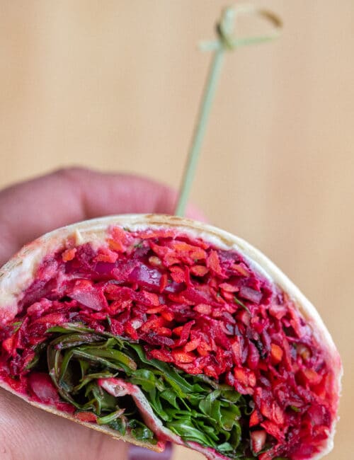Beet and Carrot Hummus Wraps