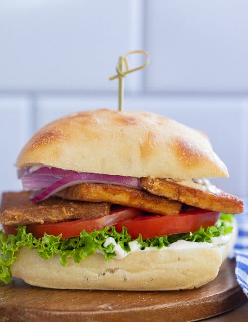 My easy Vegan Bacon Recipe is made using tofu and a homemade sweet and smoky marinade. Let it sit overnight or for