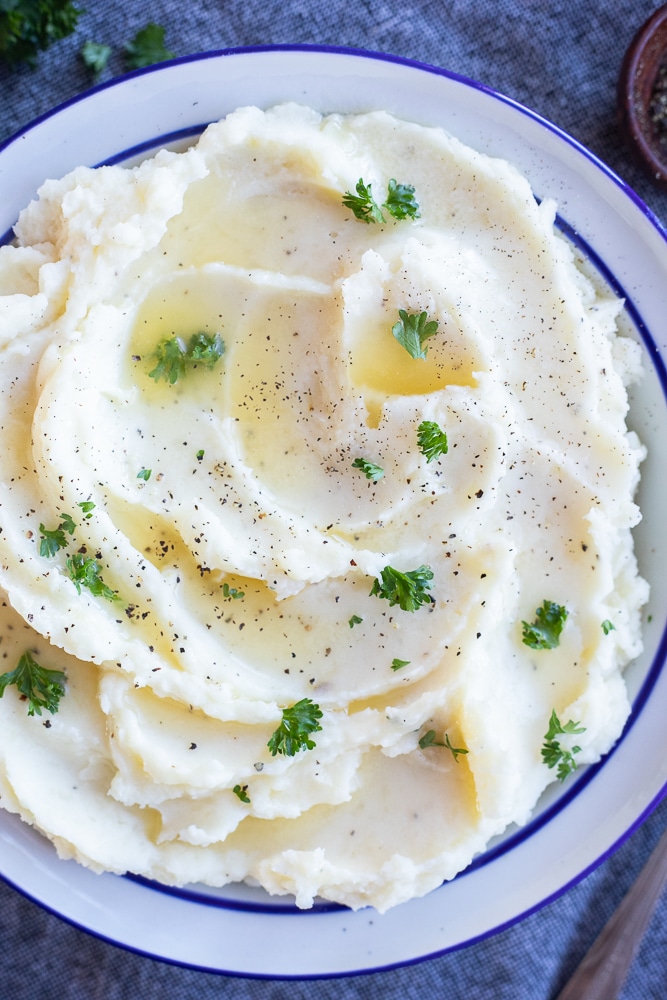 These Garlic Herb Butter Mashed Potatoes are so flavorful, fluffy, and buttery. Make them once, and they’ll likely become your go-to holiday mashed potato recipe!