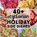 I think that there’s a lot of people who would agree with me, that the sides are the best part of the holiday meal. Whether these side dishes are cheesy, roasted, or refreshing, they are all suitable for the holiday table, or a festive get together with friends. Today I’m sharing more than 40 of my favorite vegetarian side dishes that include recipes for fresh salads, roasted veggies, creamy potatoes, moist cornbread and so much more. Let me know in the comments which one you would make!