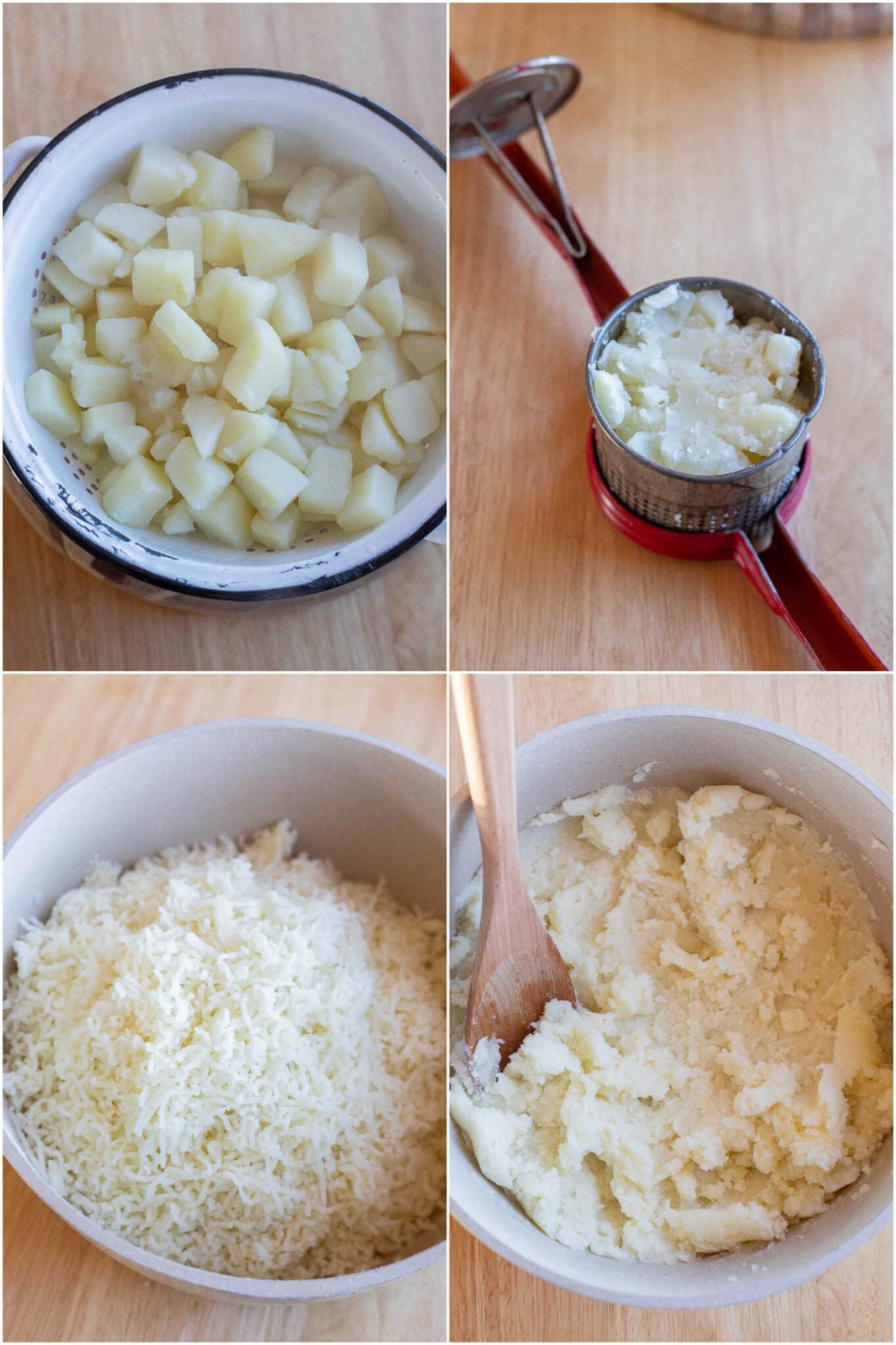 - Drain potatoes well and then let them sit for a few minutes to allow any excess water to evaporate. Then, you can either add them back to the pot and mash them well with a potato masher OR you can run them through a potato ricer, for super smooth mashed potatoes. I like to use a potato ricer because it makes the mashed potatoes super smooth and it also helps drain out any extra liquid. If using a potato ricer, you may want to hold it over the sink when you first press down on it, just in case any water comes out first.