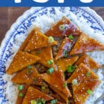 - I like to serve my teriyaki tofu over rice with a garnish of toasted sesame seeds and thinly sliced green onion. You can also spoon extra teriyaki sauce over the tofu, or over some vegetables. Enjoy!