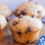 These Healthier Chocolate Chip Muffins are packed with protein and nutrients. They’re the perfect, guilt-free way to satisfy your sweet tooth in the morning, and the added plant based protein will help you to feel full until your next meal. These healthy muffins can be made regular sized, mini or even in a loaf pan.