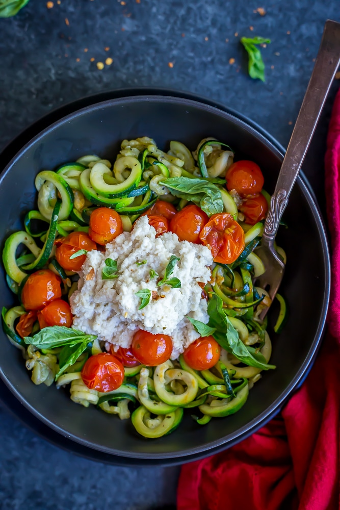 Easy Cheesy Vegan Zoodles from Running On Real Food