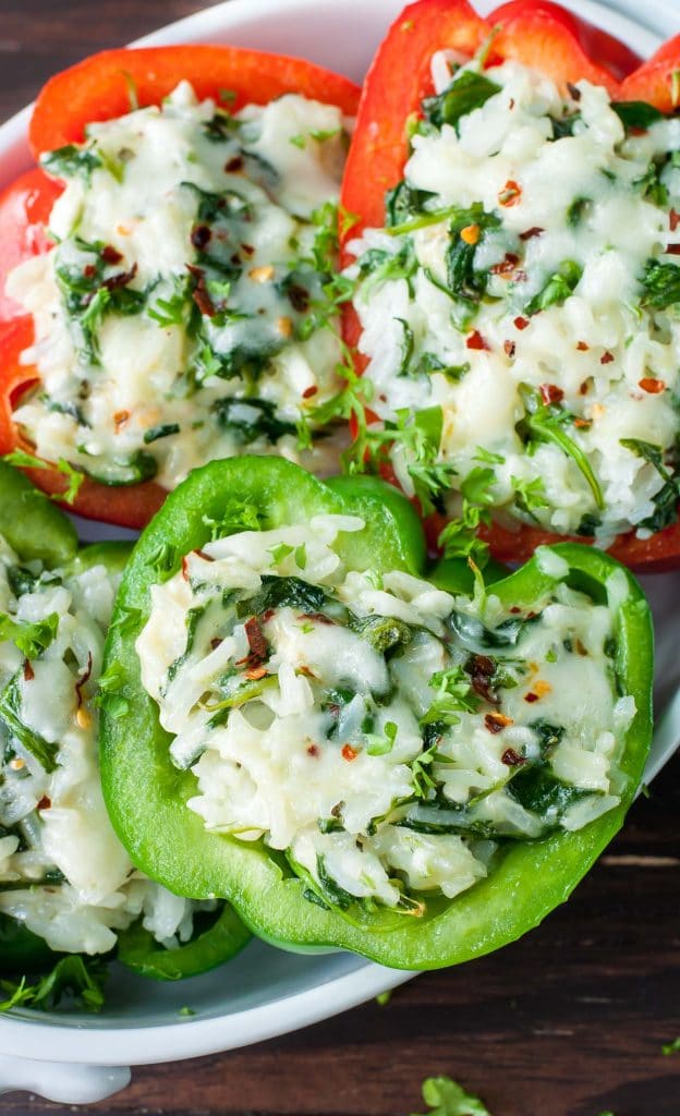 Cheesy Spinach Stuffed Peppers from Peas and Crayons