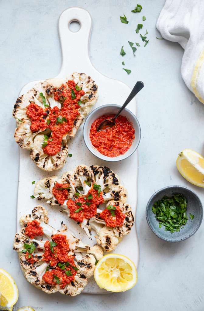 Grilled Cauliflower Steak with Romesco Sauce from Food Faith Fitness
