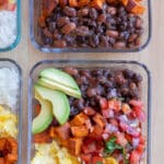 Don’t have the time or energy to make a healthy and filling breakfast each morning? Make my Meal Prep Vegetarian Breakfast Bowls on Sunday and all you need is five minutes to pop them in the microwave before heading out the door. These savory breakfast bowls are packed with protein, fiber and any veggie toppings you want to add.