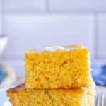 My Perfect Cornbread Recipe is fluffy, moist and packed with tons of sweet corn flavor. Cornbread is easy to make and goes great along side your favorite soup or chili. My signature cornbread recipe calls for actual corn kernels to be added into the cornbread batter, to create a sweet and savory bread with tons of fresh corn flavor. Make a batch today and enjoy all week long with all your hearty fall meals.