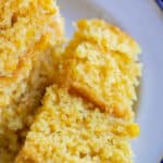 - Contains fresh corn – I love adding canned, or frozen, corn to my cornbread recipe because it not only reinforces the sweet corn flavor, but it also creates a really soft and moist cornbread.