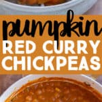 Fall is just one week away, but I’m already in the mood for cozy, pumpkin flavored, recipes. My Pumpkin Red Curry Chickpeas with Vegetables is a quick and easy dinner, or lunch, that can even be prepped ahead of time. This plant based meal is packed with protein, healthy fats and vegetables. Enjoy for a 30 minute weeknight dinner or separate into containers for easy lunches all week long.