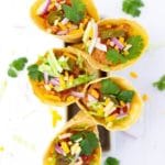 The thing is, my husband could eat pizza for every single meal every single day of his life, no joke.Ā And I could happily live on Mexican food, specifically tacos, for the rest of mine.Ā So, you put them together and you get pure amazingness!Ā And, by the way, I am totally using Cinco De Mayo as a huge excuse to make Mexican food recipe after Mexican food recipe and not have to apologize about it.Ā I hope you don’t mind!