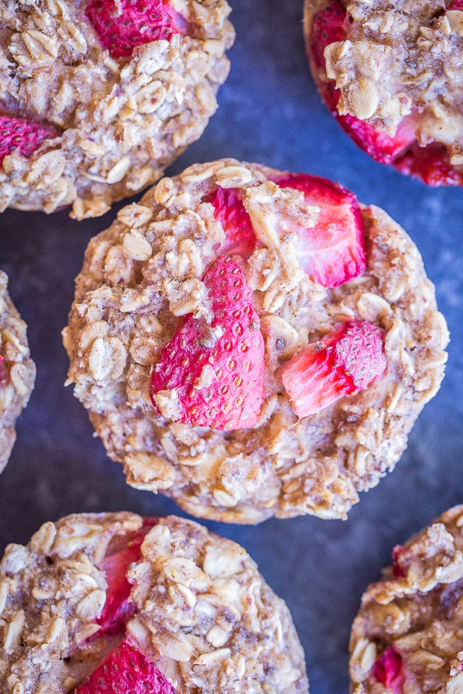 Healthy Strawberry Banana Baked Oatmeal Cups
