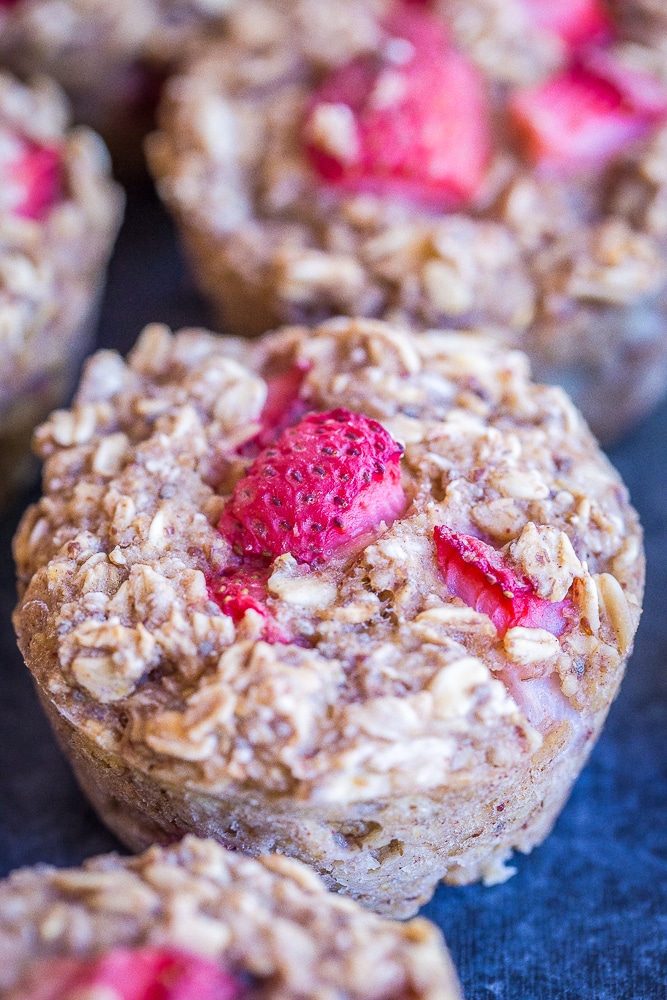 These Healthy Strawberry Banana Baked Oatmeal Cups are so easy to make and perfect for a make ahead breakfast you can enjoy all week!