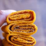 - Are these wraps sweet? No, they’re not super sweet. Pumpkin isn’t very sweet by itself and I didn’t add any extra sugar, but you could add a few teaspoons of sugar if you want them to be sweet. You can also top with a sweet topping to help bring out the sweeter pumpkin taste.
