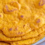 Pumpkin puree isn’t just for making sweet treats, like donuts and muffins. I love adding it to tacos, chili and curries, but it can also be used to make these super easy pumpkin flatbreads. I make this flatbread recipe a lot, using greek yogurt, but pumpkin puree also works really well and I love using it this time of year. These flatbreads can be used for both sweet and savory recipes, or you can just enjoy with some melted butter and a sprinkle of sugar and cinnamon.