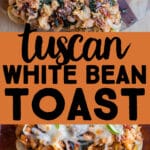 Beans on toast is a cozy meal that can be customized in so many different ways. Traditionally, it is a recipe that originates from the UK and includes baked beans on white bread toast. Today I’m sharing my Tuscan White Bean Toast recipe that is packed with protein and veggies, and easy to make. White beans are mild tasting, so they really take on all the delicious flavors of the garlic, tomato, olives and fresh herbs. Enjoy this hearty vegetarian meal for lunch or dinner and serve with a side salad, if desired.