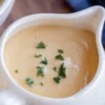 - Can be made in advance – Gravy is always that one Thanksgiving dinner side that I rush to make last-minute. This year, I decided to come up with a gravy recipe that can be made in advance and heated quickly on the stove or in the microwave.
